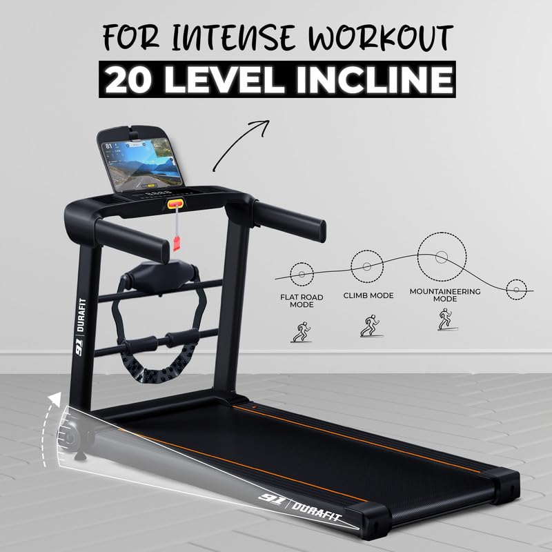 【 20-Level Auto Incline 】- Intense Training Burn more calories and challenge yourself with 20 levels of automatic incline, perfect for muscle toning and endurance building. The large LED display tracks hand pulse, time, speed, distance, and calories to keep you informed during your workout.