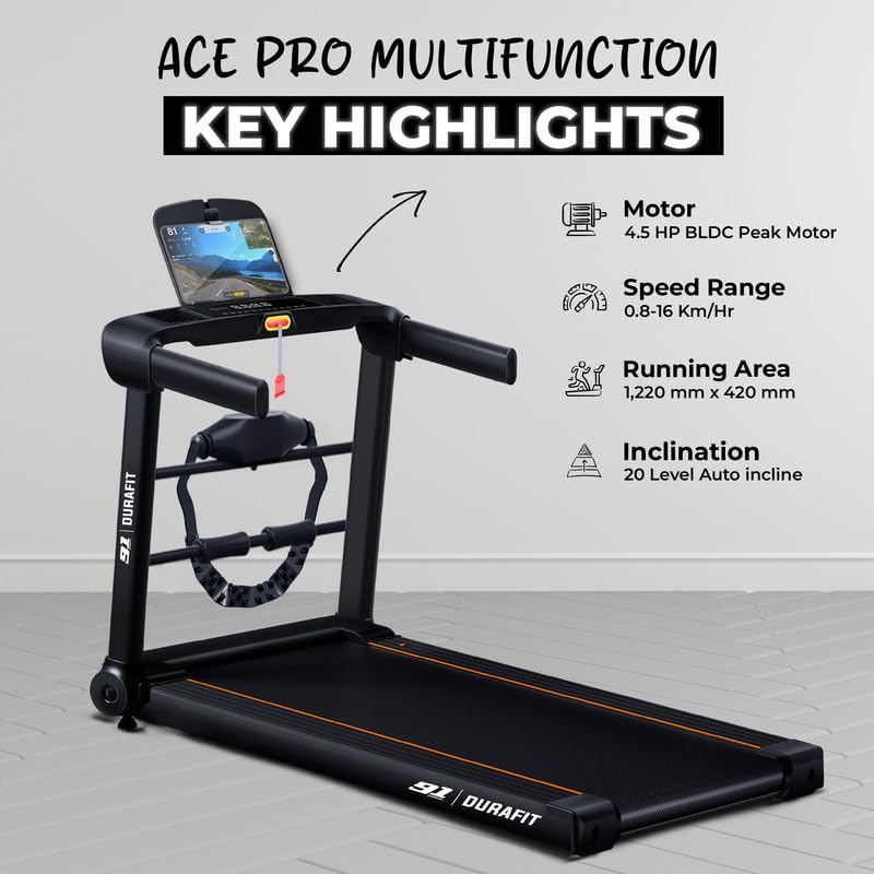 【 Powerful & Efficient BLDC Motor 】– Equipped with a 4.5 HP Peak Brush Less BLDCmotor, this treadmill offers high efficiency, reduced noise, and longer lifespan. The brushless motor ensures smooth operation for interval, speed, and endurance training, with a speed range of 0.8 to 16 km/h for a customized workout.