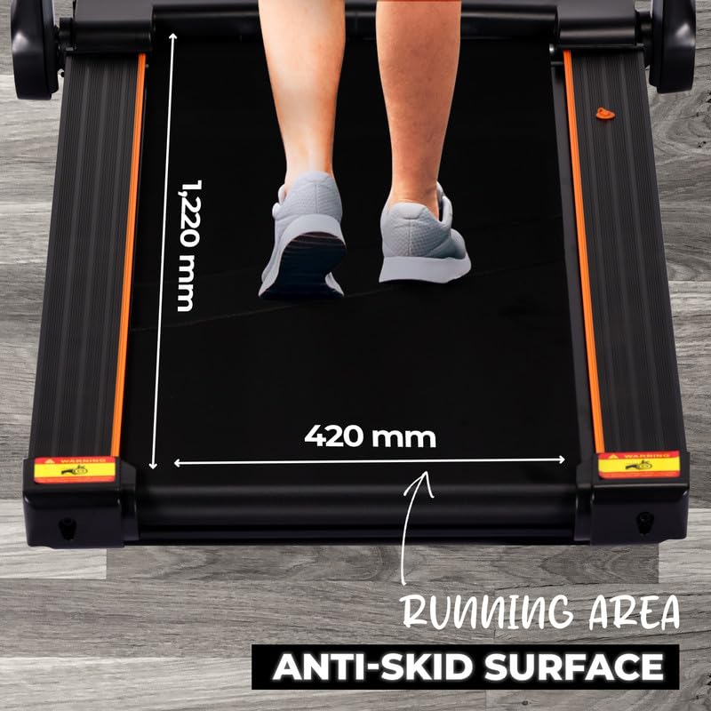 【 Spacious & Running Surface 】 – Featuring a large 1200 x 420 mm running belt, this treadmill provides ample space for natural movement. The multi-layered belt with textured material reduces sudden shocks, ensuring a comfortable and joint-friendly workout.【 12 Preset Training Programs 】 – Choose from 12 pre-set workout programs tailored for weight loss, strength training, and endurance building.