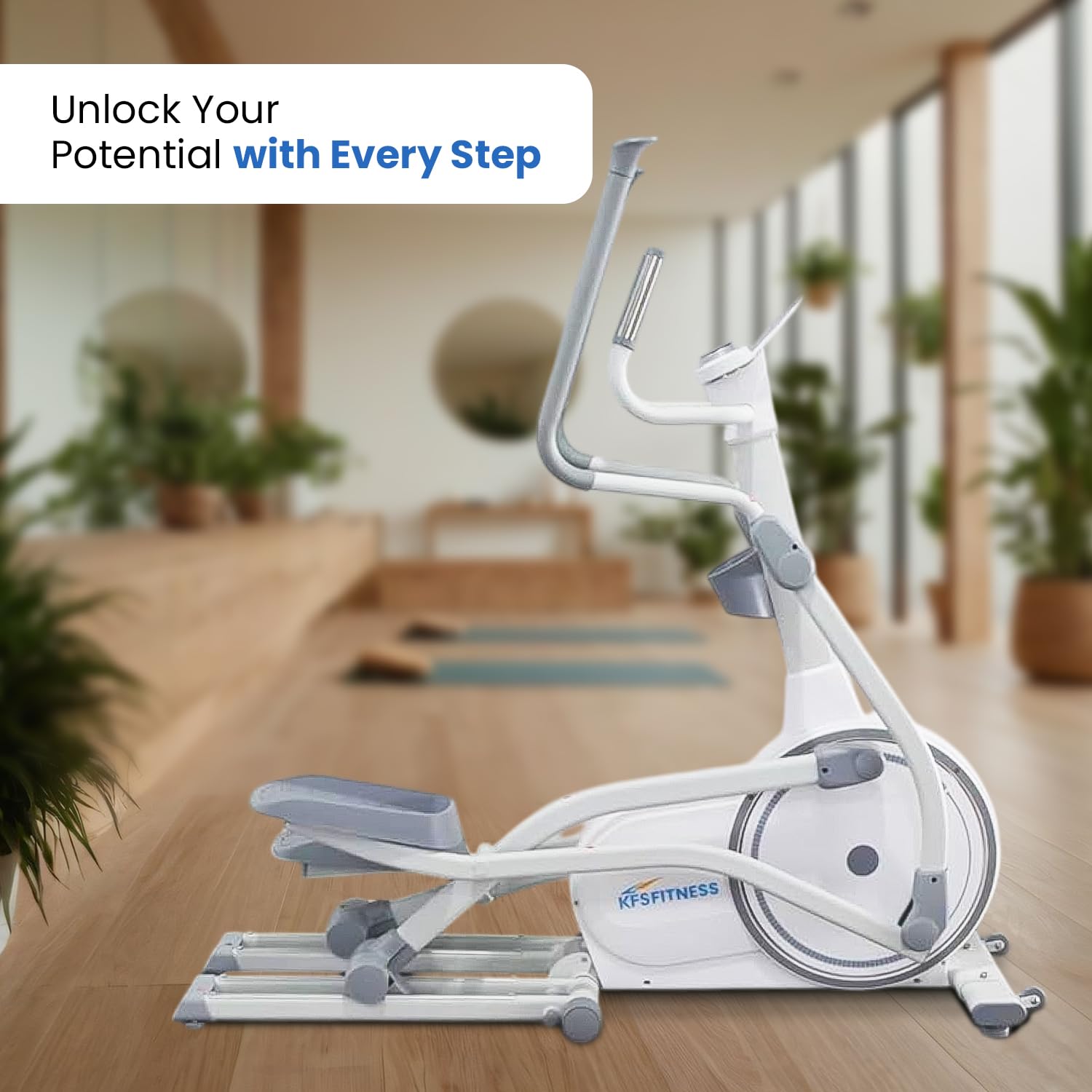 Built for Comfort and Durability Featuring a generous 17″ stride and a robust structure supporting up to 135kg, this trainer offers a comfortable and secure workout. Its sleek white finish and durable design make it a perfect fit for any home gym.
