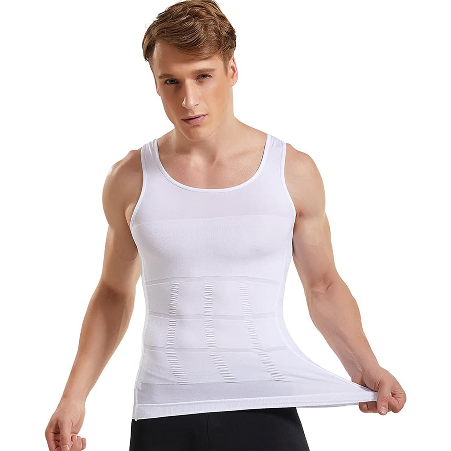 While providing compression and control, the tank top is typically designed to be comfortable to wear throughout the day. It should have a snug fit without being overly tight or restrictive.