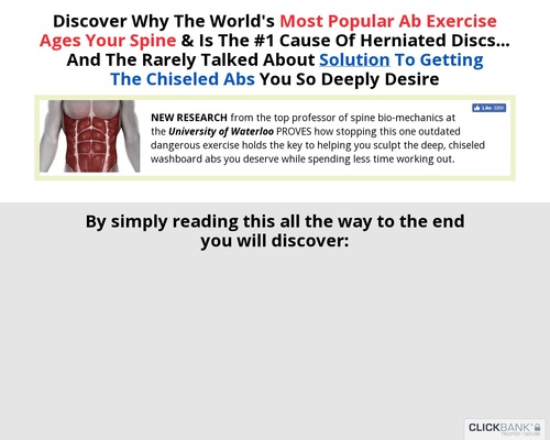 NEW RESEARCH from the top professor of spine bio-mechanics at the University of Waterloo PROVES how stopping this one outdated dangerous exercise holds the key to helping you sculpt the deep, chiseled washboard abs you deserve while spending less time working out.