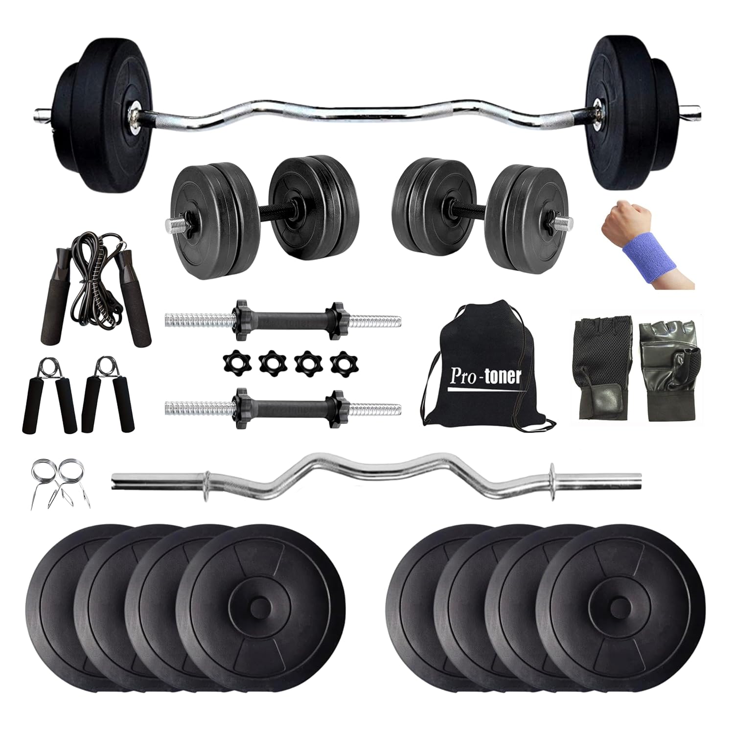Free Accessories: Gym Bag, Sweat bands, Hand Gripper, Skipping Rope & Pair of Gloves